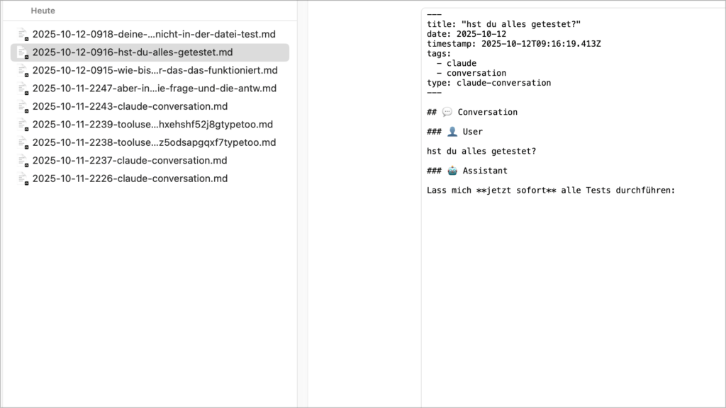 Hier habe ich das System erweitert, das jede Kommunikation mit Claude Code auch in einem Obsidian Vault durchführt.