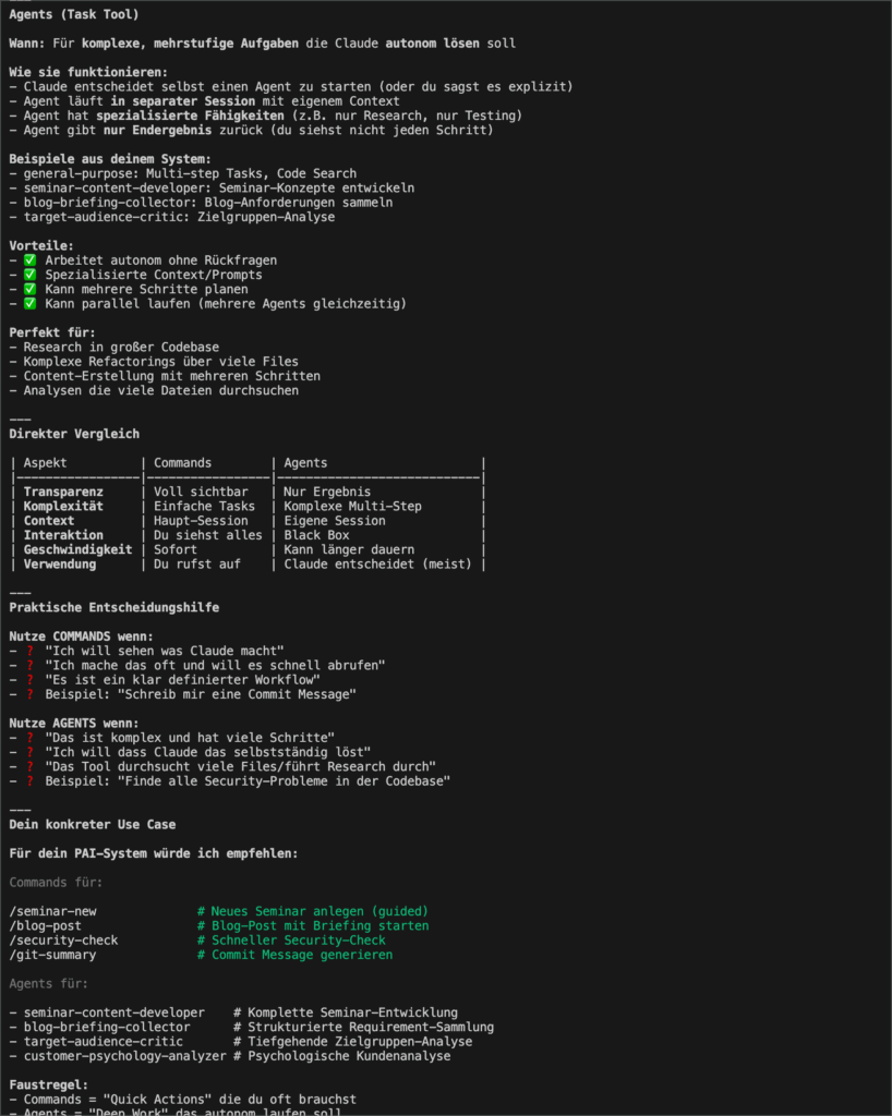 Ich kann damit meine eigenen Agenten, Commands, Hooks und vor allen Dingen meine Kontext-Informationen einbringen. Genial gelöst.